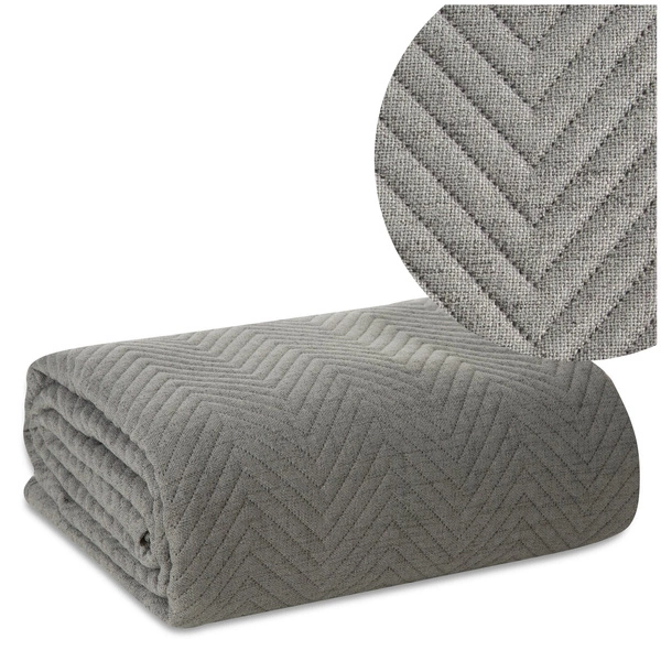 Narzuta Len wykonana została z materiału fakturą przypominającą strukturę lnu. Jednolity deseń w stalowym kolorze zdobi pikowanie w jodełkę.