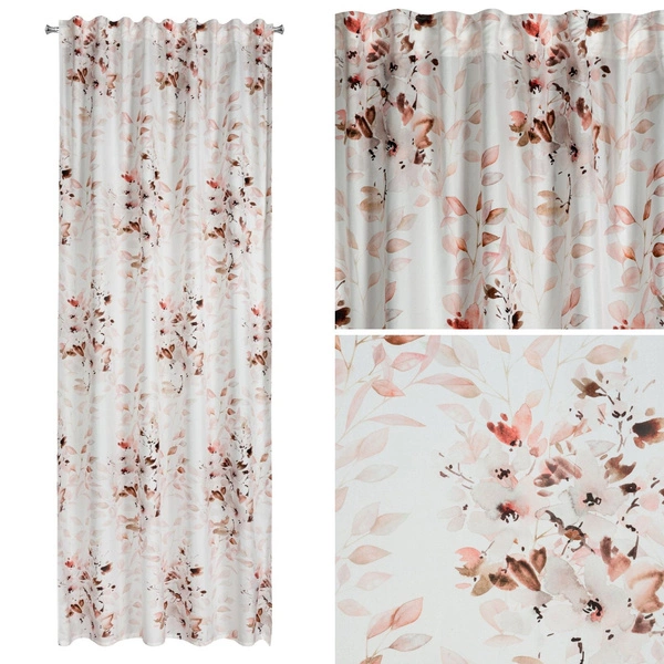 Wzór z delikatnymi kwiatami w różowo-beżowych barwach dodaje pomieszczeniu świeżości, jednocześnie wprowadzając subtelny akcent natury do Twojego wnętrza. Dzięki swojej uniwersalnej kolorystyce zasłona idealnie wpasuje się w każde pomieszczenie, niezależnie od jego stylu i aranżacji. Można ją z powodzeniem zastosować w sypialni, salonie czy jadalni.