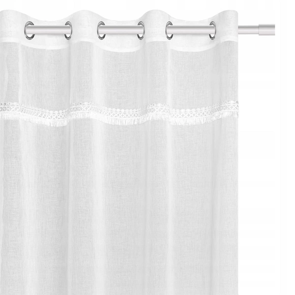 Firana BOHO charakteryzuje się gładkim, jednobarwnym, mleczno-białym deseniem. Posiada koronkę, która nadające jej efektownego wyglądu.