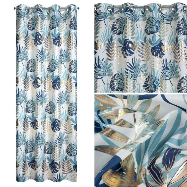 Zasłona posiada złote elementy, które ożywiają jej wygląd, dodając eleganckiego, luksusowego akcentu. Detale błyszczą w świetle, tworząc unikalny efekt, który doda blasku każdemu pomieszczeniu.