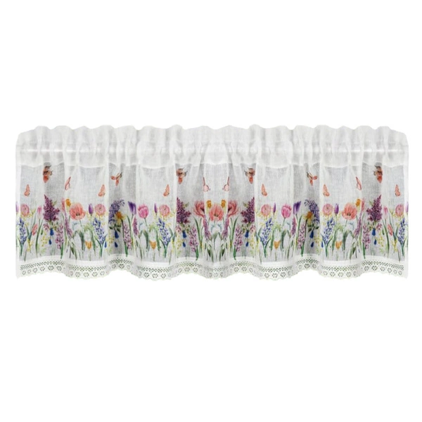 Największym atutem prezentowanego modelu są piękne kwiaty, które zdobią jej powierzchnię. Te delikatne, kolorowe motywy natury dodają subtelności i romantycznego nastroju do pomieszczenia. Dodatkowo, wykończenie bawełnianą koronką wzbogaca jej wygląd, czyniąc ją niezwykle atrakcyjną i przykuwającą uwagę.