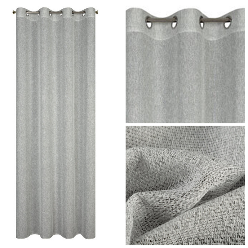 Ta elegancka zasłona została wykonana z materiału o strukturze siatki przetykanej srebrną nicią, co nadaje jej wyjątkowego efektu i subtelności.