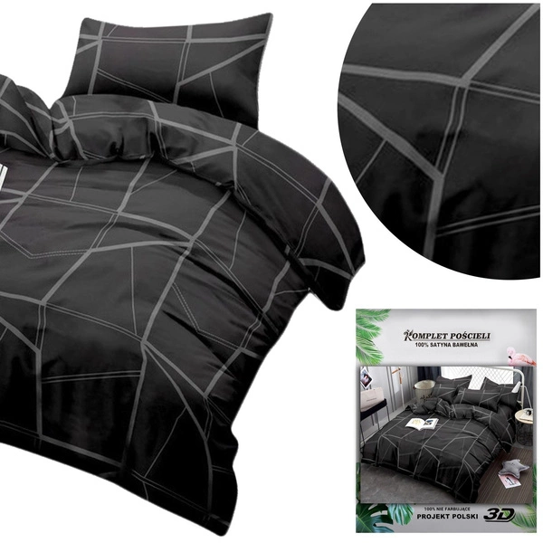 Nadruk jaki znajduje się na materiale naniesiony został technologią 3D. Doskonałe oddanie kolorów i nowoczesne wzory to cechy charakterystyczne tej kolekcji. Na komplecie znajduje się nadruk przedstawiający wzór geometryczny na grafitowym tle.
