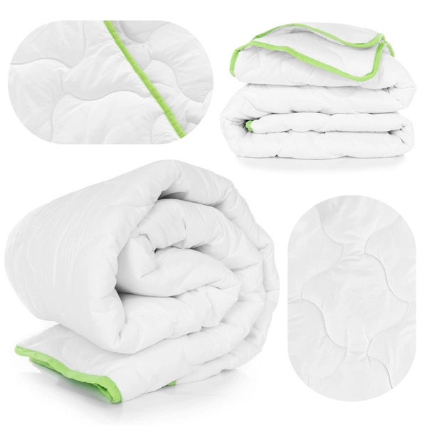 ❤️Biała tkanina kołdry kontrastuje pięknie z zieloną lamówką, dodając akcentu świeżości i natury do każdej sypialni.