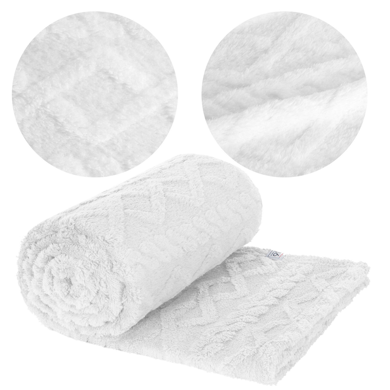 Opinie o Koc 150 x 200 Design Mikrofibra Warkocz Biały
