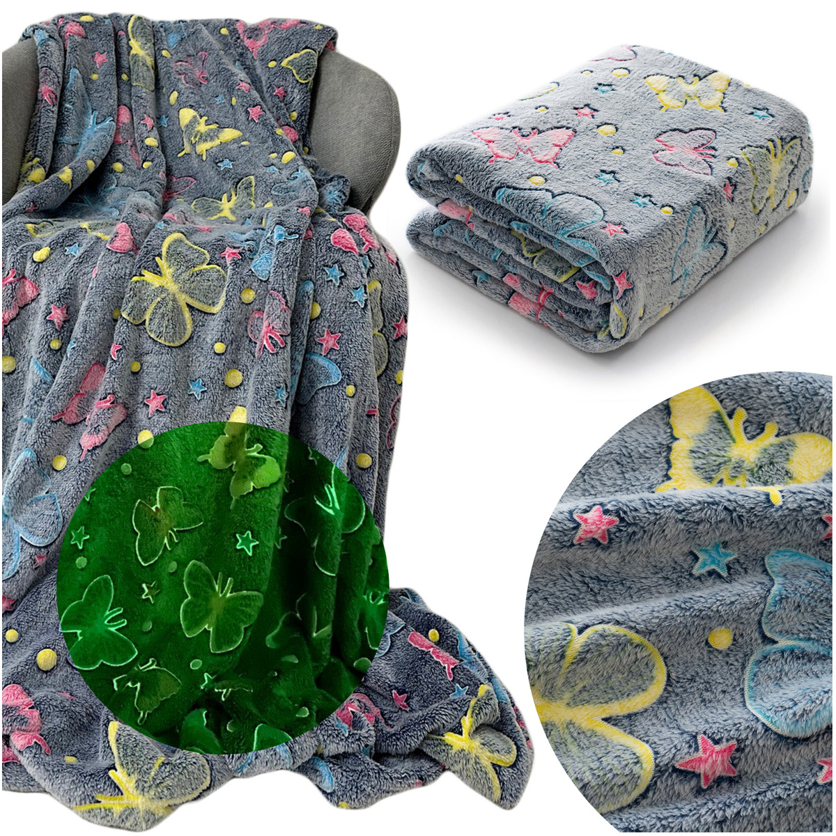 Każdy koc ma fluorescencyjny wzór, który dodaje magicznego efektu podczas nocy, tworząc świetliste obrazy, które dzieci mogą podziwiać przed snem.