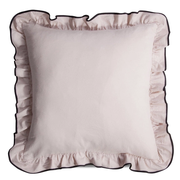 Poszewka Kelly w beżowym kolorze wykonana została z miękkiej bawełny, która jest przyjemna w dotyku. Na brzegach obszyta jest elegancką falbanką w tym samym kolorze, zakończonej czarną lamówką. Dodatek ten ozdabia produkt i nadaje mu romantycznego charakteru. Doskonale dopasuje się do wielu wnętrz, szczególnie tych urządzonych w modnym, nowoczesnym stylu. Świetnie urozmaici wystrój sypialni, salonu czy tarasu.