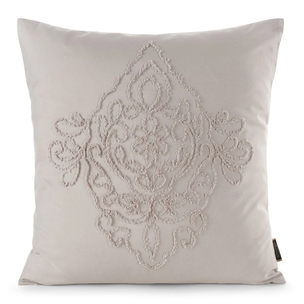 Ta ekskluzywna poszewka jest ozdobiona ornamentową aplikacją, która nie tylko przyciąga wzrok, ale także dodaje każdemu wnętrzu niepowtarzalnego charakteru i poczucia wyrafinowania.