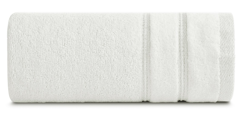 Ręcznik Glory4 został wykonany z wysokiej jakości bawełny o splocie frotte. Tkanina jest bardzo miękka i miła w dotyku oraz dobrze chłonie wodę. Kolory nie tracą swojej intensywności nawet po wielokrotnym praniu. Klasyczny kolor został wzbogacony o minimalistyczną bordiurę z weluru z dodatkiem błyszczącej nici. Dzięki temu charakteryzuje się wyrafinowaną prostotą, która jednocześnie idealnie wpasuje się w nowoczesną aranżację łazienki. Sprawdzi się również jako praktyczny prezent np. na parapetówkę.