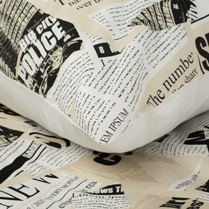 Komplet pościeli Sonia wykonany jest w wysokogatunkowej tkaniny bawełnianej, dzięki czemu jest przyjemny w dotyku, a także przewiewny. Zaletą pościeli jest jej trwałość oraz lekkość, a także duży komfort cieplny. Materiał przyjemnie otula ciało zapewniając całonocny wypoczynek. Nowoczesna technika barwienia i nadruku pozwala na długo zachować kolorystykę i nasycenie barw mimo wielokrotnego prania. Dwustronny komplet wyróżnia nowoczesny nadruk przedstawiający wycinki z gazet, natomiast spód pościeli jest jednolity.
