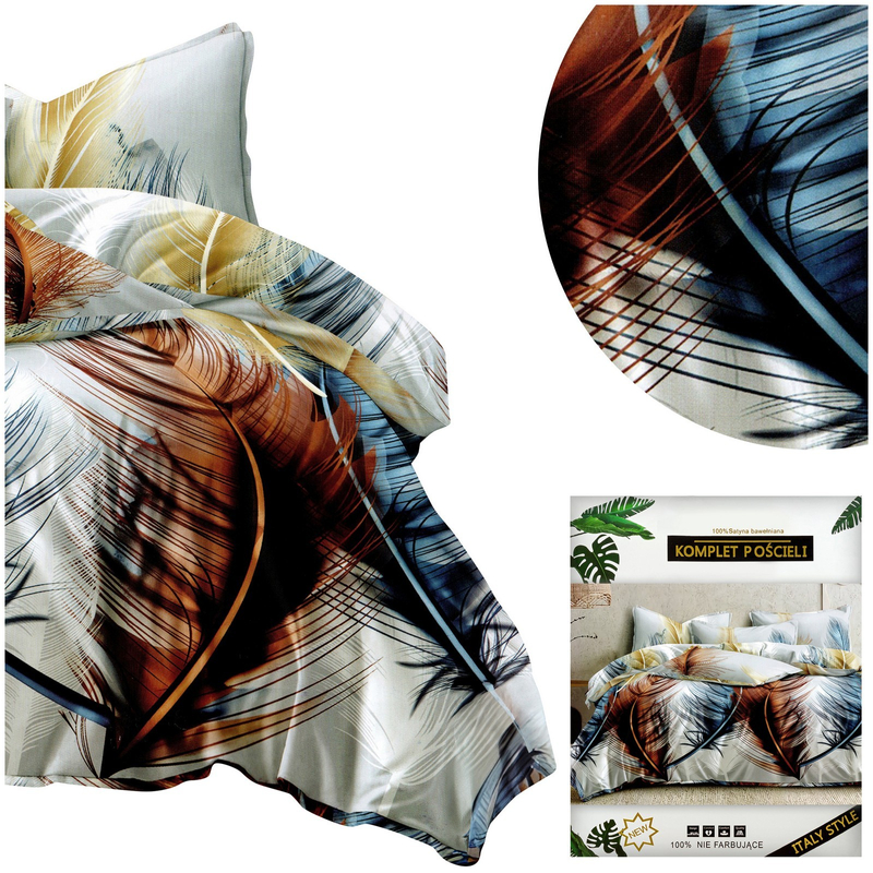 Doskonałe oddanie kolorów i nowoczesne wzory to charakterystyczne cechy pościeli Dalwin. Miłośnicy nietuzinkowych motywów docenią ich kreatywność, a fani stylowych barw będą wniebowzięci. Komplet dzięki swej prostocie i elegancji spełni oczekiwania każdego Klienta. Prezentowany model przedstawia wielokolorowe piórka.