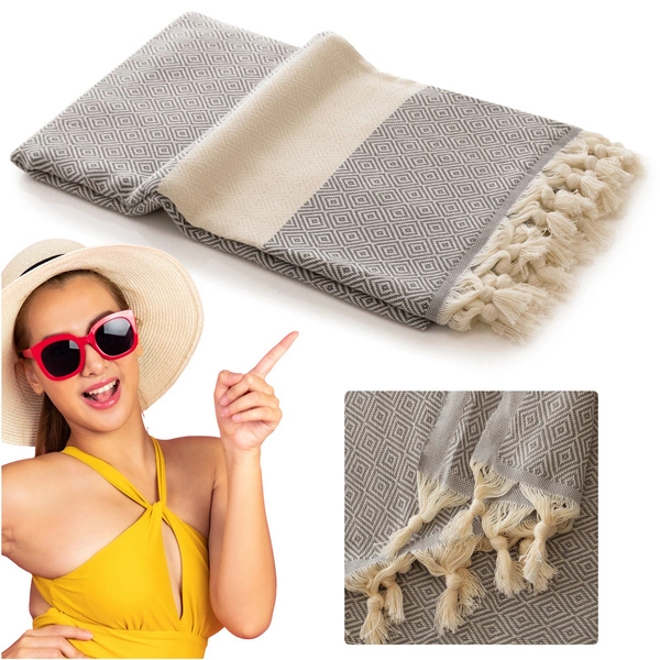 Jeśli planujesz spędzić wakacje nad wodą, to ten ręcznik plażowy z pewnością uprzyjemni Ci wyjazd - delikatna dla ciała bawełna oraz stylowe wzory i frędzle sprawią, że poczujesz lato w pełnej odsłonie.