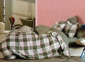 Pościel z satyny bawełnianej to wysokiej jakości materiał o splocie satynowym z włókien bawełnianych, zapewniający wyjątkową miękkość. Ten rodzaj tkaniny wyróżnia się delikatnym połyskiem i jest aksamitny w dotyku. Wysoka struktura włókien pozwala na swobodną cyrkulację powietrza, dzięki czemu zimą daje nam ciepło a latem chłodzi. Naturalny skład zapewnia, że nasza skóra będzie mogła pod nią swobodnie oddychać. Dodatkowym atutem pościeli jest jej łatwość użytkowania gdyż nie jest śliska i bardzo dobrze przylega do kołdry. Komplet w odcieniu zieleni z dodatkiem różu przedstawia wzór kraty.