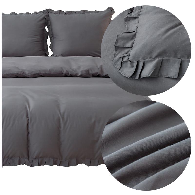 Wykończenie pościeli delikatną falbaną nadaje jej wyjątkowy, elegancki wygląd. Taki detal sprawia, że produkt jest nie tylko praktyczny, ale również estetyczny, podkreślając walory dekoracyjne sypialni.