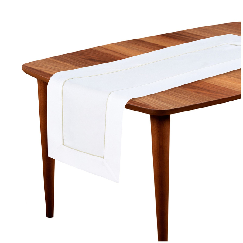 Wprowadź do swojego domu odrobinę luksusu i stylu dzięki białemu, gładkiemu bieżnikowi GOLD z ozdobną listwą.❣️