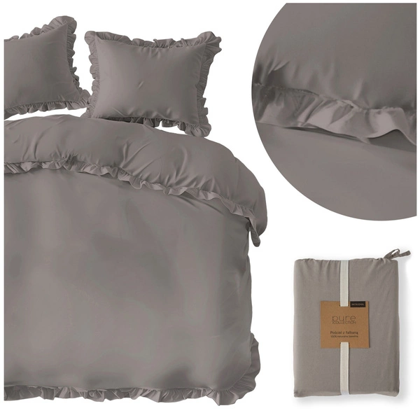 Komplet pościeli Pure z falbaną doskonale sprawdzi się w każdej sypialni, dodając wnętrzu przytulności i elegancji. Idealny do wnętrz w stylu klasycznym, rustykalnym, jak i nowoczesnym. Doskonały również na prezent – eleganckie opakowanie z tkaniny dodaje mu wyjątkowego charakteru.