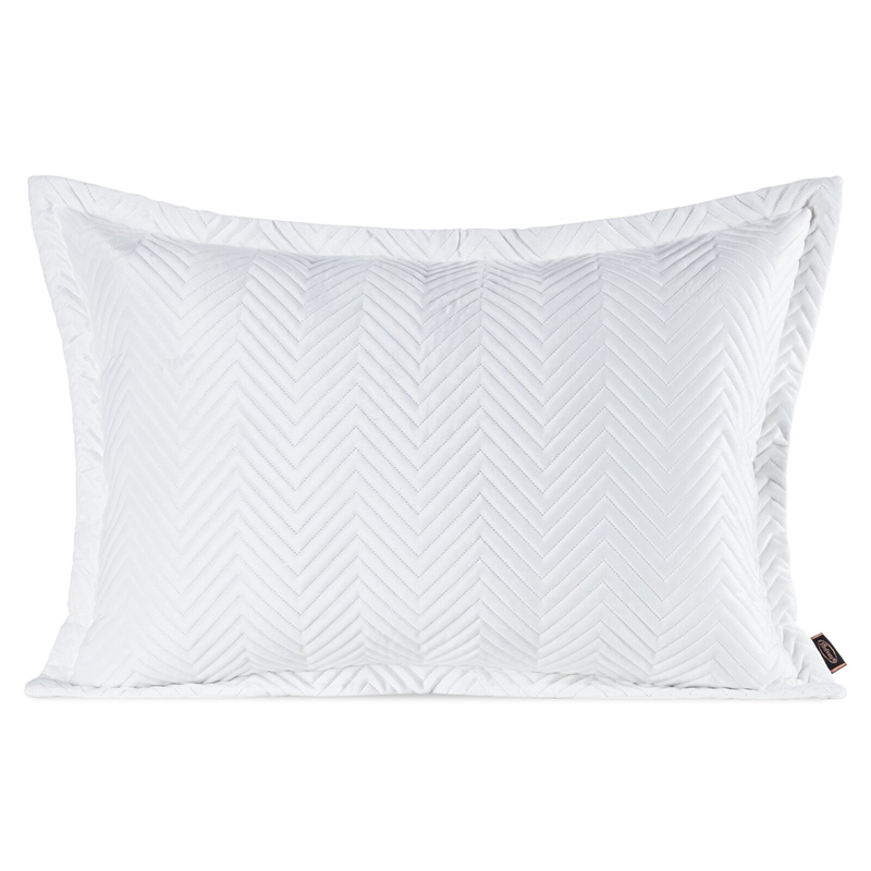 Geometryczny wzór w klasyczną jodełkę został wykonany nowoczesną techniką hot press, czyli bez użycia nici. Dzięki temu pikowanie jest wyjątkowo precyzyjne i trwałe, a tkanina zachowuje swoją gładkość. Taki detal dodaje głębi i nowoczesnego sznytu, doskonale komponując się z różnymi stylami wnętrz.