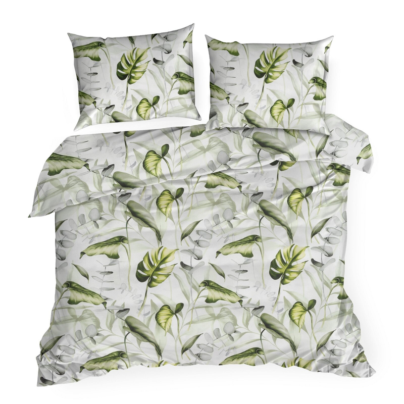 ❣️Pościel bawełniana Classic Ellen to połączenie egzotycznego uroku z elegancją – zielone liście monstery na jasnym tle tworzą unikalny, stylowy wzór.❣️