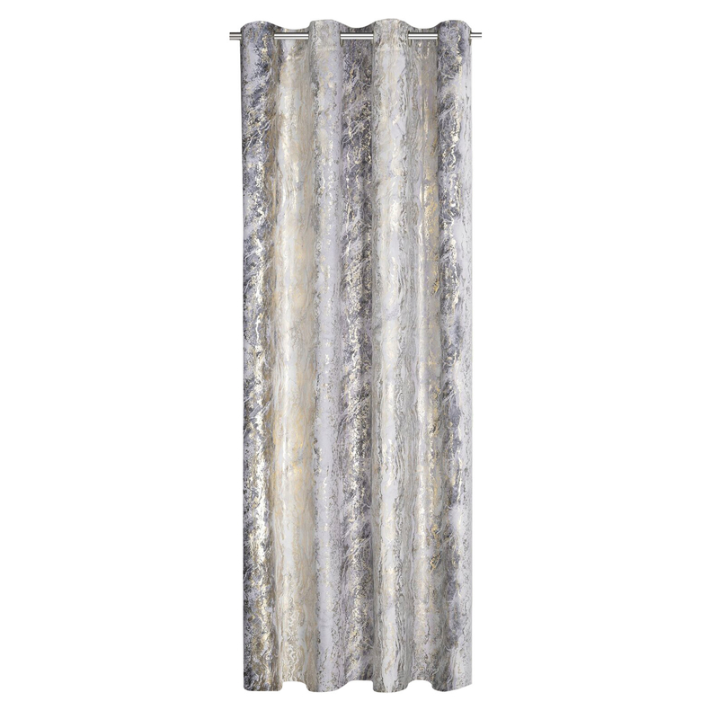 Delikatny, przecierany wzór o metalicznym połysku pięknie odbija światło – zarówno naturalne, jak i sztuczne. Dzięki temu zasłona tworzy w pomieszczeniu wyjątkowy, efektowny klimat i staje się niebanalną dekoracją wnętrza.