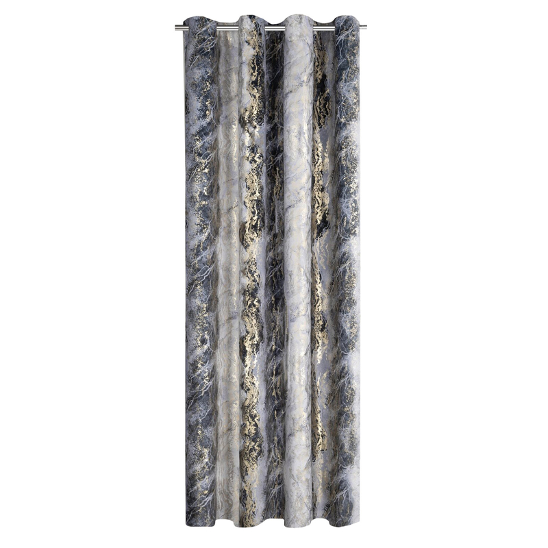 Delikatny, przecierany wzór o metalicznym połysku pięknie odbija światło – zarówno naturalne, jak i sztuczne. Dzięki temu zasłona tworzy w pomieszczeniu wyjątkowy, efektowny klimat i staje się niebanalną dekoracją wnętrza.