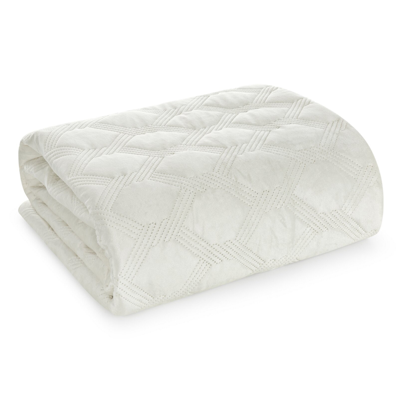Pikowanie narzuty SOFIA 5 zostało wykonane nowoczesną metodą hot press, co oznacza brak widocznych szwów. Zamiast tego, geometryczny wzór tworzony jest za pomocą ciepła, co nadaje narzucie gładki, jednolity wygląd. Taki design idealnie komponuje się z nowoczesnymi wnętrzami, dodając im harmonii.