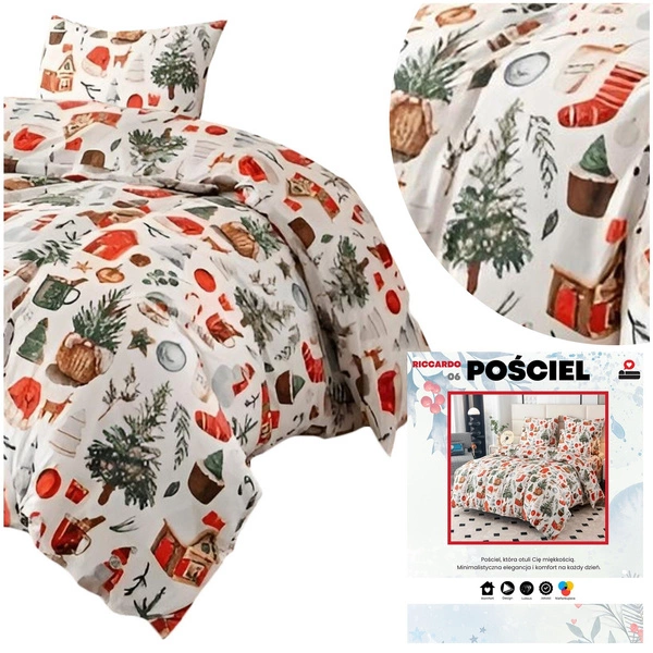 Wprowadź magię Bożego Narodzenia do swojej sypialni dzięki kompletowi pościeli flanelowej Riccardo. Wykonana z grubej, przyjemnej w dotyku tkaniny, zapewnia miękkie otulenie i ciepło, którego potrzebujesz zimą. To idealny wybór na świąteczne wieczory i mroźne noce – dekoracyjny i funkcjonalny zarazem.