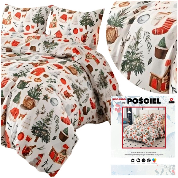 Wprowadź magię Bożego Narodzenia do swojej sypialni dzięki kompletowi pościeli flanelowej Riccardo. Wykonana z grubej, przyjemnej w dotyku tkaniny, zapewnia miękkie otulenie i ciepło, którego potrzebujesz zimą. To idealny wybór na świąteczne wieczory i mroźne noce – dekoracyjny i funkcjonalny zarazem.