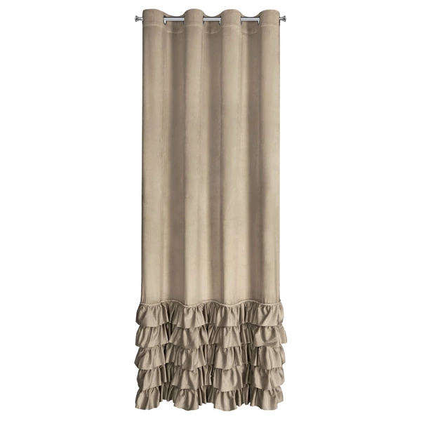 Dzięki przelotkom zasłonę powiesisz w kilka chwil, bez zbędnych trudności. Tkanina układa się w równomierne fale, prezentując się estetycznie i elegancko w każdej aranżacji. To praktyczne rozwiązanie do szybkiej i efektownej zmiany wystroju wnętrza.