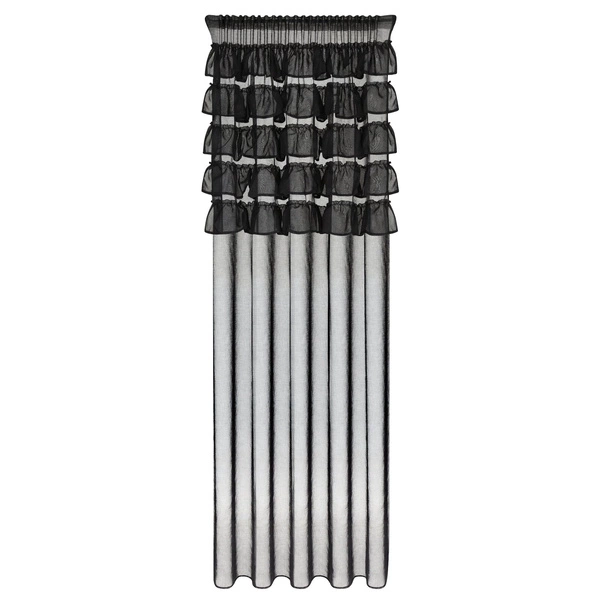 Elegancki detal w postaci falbanek dodaje całości lekkości, romantyzmu i unikalnego charakteru, dzięki czemu zasłona staje się dekoracyjnym akcentem każdego pomieszczenia.