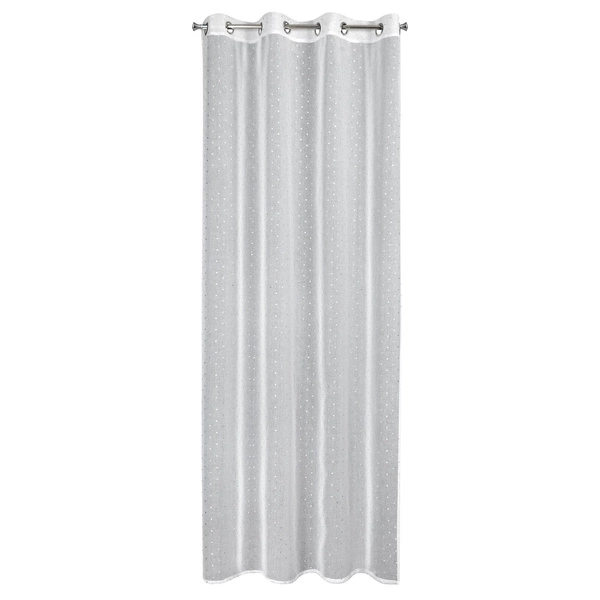 Ozdobne srebrne kropki nadają firanie wyjątkowego charakteru. To drobny detal, który wyróżnia ją na tle tradycyjnych dekoracji okiennych i sprawia, że staje się efektownym dodatkiem do nowoczesnych aranżacji.
