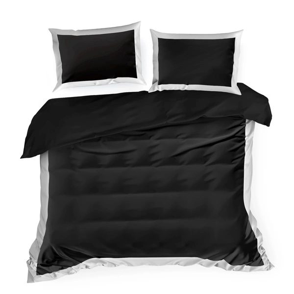 Kontrastowe detale zastosowane na poduszkach i poszwie nadają całości nowoczesny wygląd, który urozmaica aranżację bez potrzeby dodatkowych ozdób.