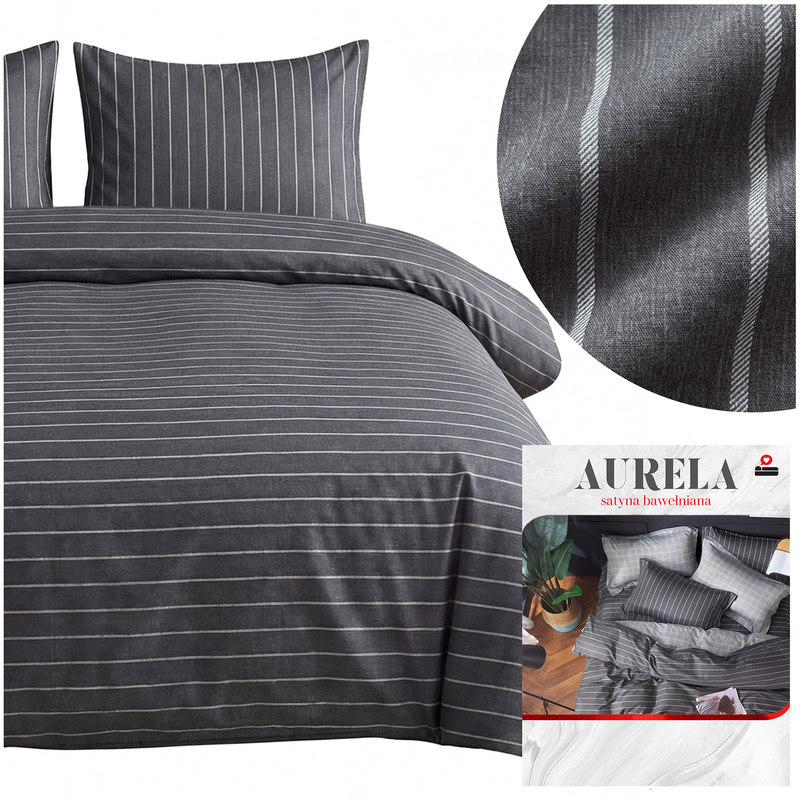 Pościel satyna bawełniana Aurela została uszyta z wysokiej jakości tkaniny o splocie satynowym z włókien bawełnianych. Dzięki temu jest wyjątkowo miękka, przyjemnie aksamitna w dotyku i jednocześnie trwała – idealna, jeśli lubisz komfort „hotelowej” pościeli na co dzień.