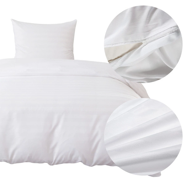 Pościel RAMIRO w subtelne poziome pasy to minimalistyczna propozycja, która nada wnętrzu wyjątkowy charakter i delikatny blask. Jednolita kolorystyka sprawia, że łatwo dopasujesz ją do różnych aranżacji, tworząc elegancki i harmonijny efekt.