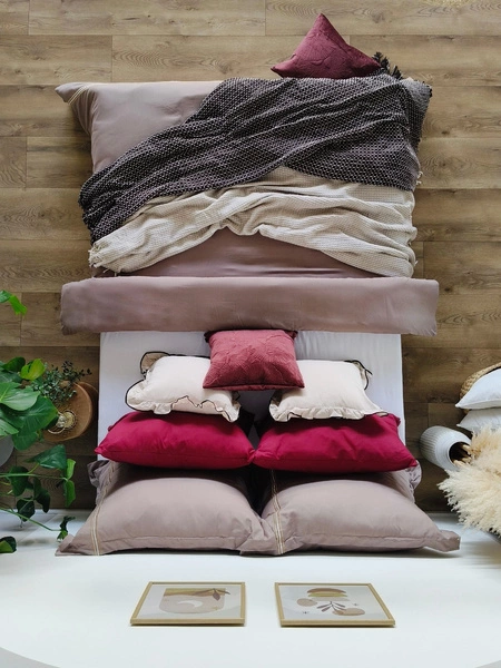 Nasz gotowy zestaw tekstyliów do łóżka to rozwiązanie stworzone z myślą o Tobie! Staranne dopasowanie kolorystyczne i stylistyczne sprawia, że Twoje łóżko stanie się centralnym punktem sypialni, emanując elegancją i przytulnością.