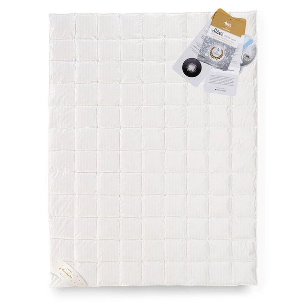 • Kolekcja SILVER to polski puch gęsi 90%, tkaninę pokryciową stanowi super delikatna tkanina - SATYNA - 85% bawełna / 15% lurex SILVER, 128g/m2. Dzięki niemu jest to wyrób antybakteryjny, antyzapachowy oraz ogólnie prozdrowotny z możliwością prania.