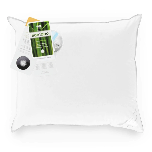 Poduszka pokrywa otulający inlet (bawełna z domieszką włókna bambusowego) o gramaturze 105g/m2 . Wypełniona polskim gęsim puchem 90% (pozostałe 10% to miękkie, drobne piórka puchowe). Użyty puch jest surowcem bardzo wysokiej jakości, posiadającym wysoką wyporność. Dzięki czemu produkty są lekkie przy zachowaniu wysokiego współczynnika termoizolacji oraz niesamowicie sprężyste. Wypełnienie poddane procesowi EEC, który zapewnia lepsze właściwości puchowi oraz wyjątkową czystość i brak zapachu. Produkt z atestem PZH - wydanym przez Narodowy Instutut Zdrowia Publicznego. Wyroby z tej kolekcji zapakowane są w reprezentacyjne opakowania foliowo-materiałowe.