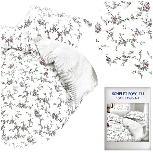 Opinie o Pościel Satyna Bawełniana w Kwiaty Biała A856 200x220NP 3 części