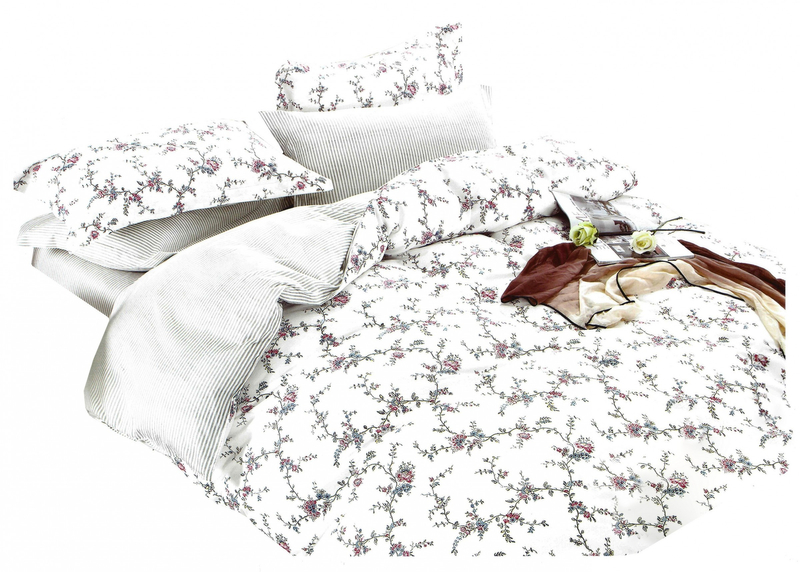 Opinie o Pościel Satyna Bawełniana w Kwiaty Biała A856 200x220PP 4 części