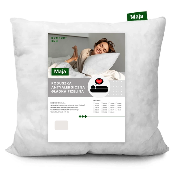 • Poduszka Maja to perfekcyjnie stworzony produkt, który zadowoli każdego wymagającego klienta. Połączone w niej zostały najlepszej jakości materiały z doskonałym, antyalergicznym wypełnieniem.