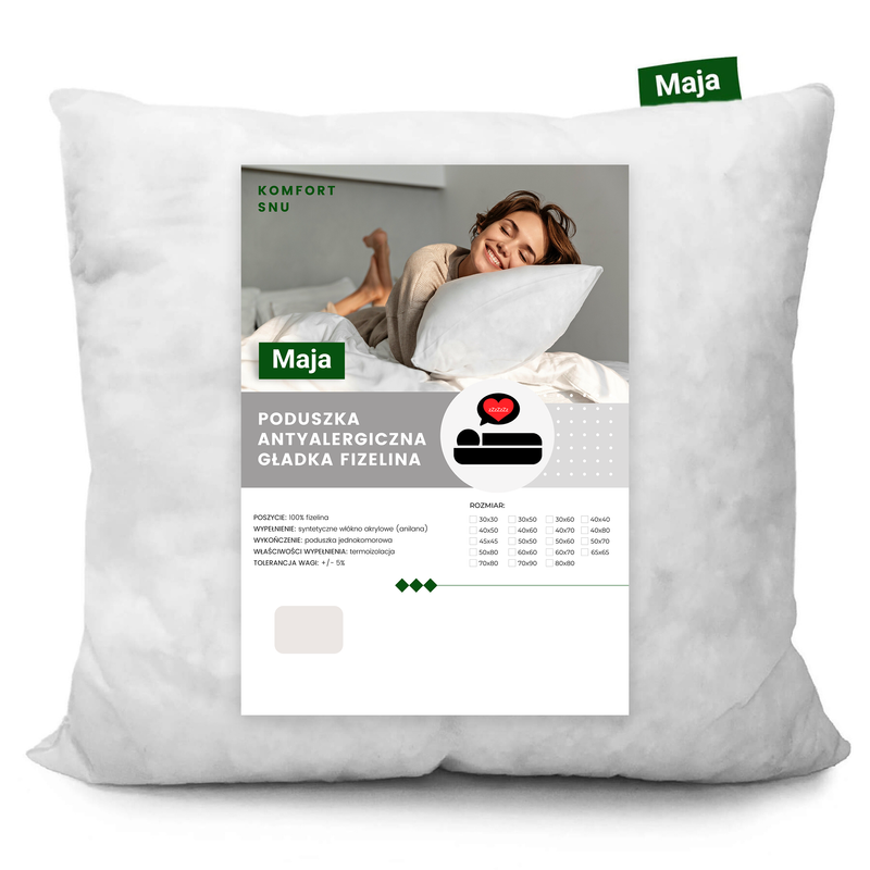 - Poduszka Maja to perfekcyjnie stworzony produkt, który zadowoli każdego wymagającego klienta. Połączone w niej zostały najlepszej jakości materiały z doskonałym, antyalergicznym wypełnieniem.