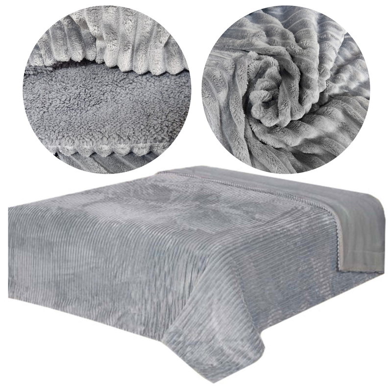 Narzuta została uszyta z matowego materiału, przypominającego bawełnę. Strona wierzchnia została wykonana z materiału w prążki, zaś spodnia z miękkiego kożuszka. Prosta kolorystyka i forma sprawiają, że idealnie pasuje do wnętrz urządzonych w różnych stylach. Kapa jest lekka i nadaje się do prania w pralce. Wysoka jakość materiałów, staranność i rzetelność wykonania zapewniają trwałość wyrobu i łatwość użytkowania.