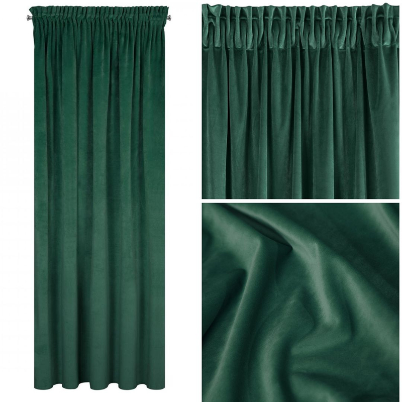 Zaciemniająca zasłona z kolekcji Villa, firmy Eurofirany, wykonana z delikatnego weluru. Zasłony idealnie nadają się do każdego nowoczesnego wnętrza. Będą stanowić elegancki dodatek w każdej sypialni czy salonie. Wykonane są z gładkiego materiału, na górze ozdobionego estetycznymi przeszyciami, dzięki czemu zasłona układa się faliście.
