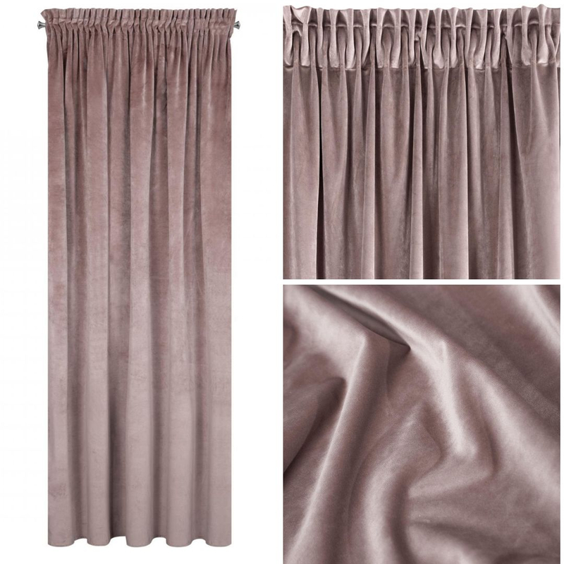 Zaciemniająca zasłona z kolekcji Villa, firmy Eurofirany, wykonana z delikatnego weluru. Zasłony idealnie nadają się do każdego nowoczesnego wnętrza. Będą stanowić elegancki dodatek w każdej sypialni czy salonie. Wykonane są z gładkiego materiału, na górze ozdobionego estetycznymi przeszyciami, dzięki czemu zasłona układa się faliście.