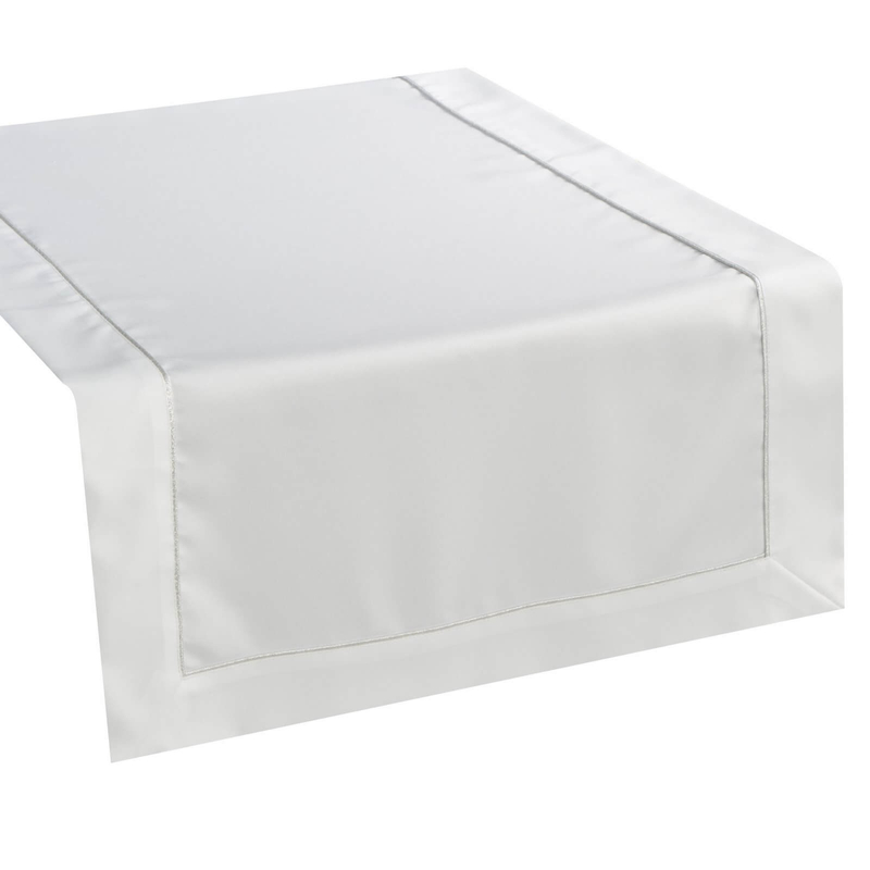 Biała barwa upiększona jest niezwykle eleganckim przeszyciem o srebrnym, lekko połyskującym kolorze. Tak skonstruowany towar z łatwością wpasuje się do każdej aranżacji, a następnie będzie odpowiednim wykończeniem stołu podczas codziennego użytkowania lub różnych imprez okolicznościowych.