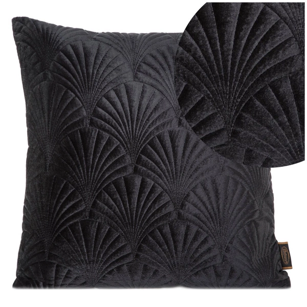 Poszewka ozdobiona jest idealnym odcieniem czarnej barwy oraz eleganckim pikowaniem niezmiernie przypominającym wachlarz liści miłorzębu. Tak subtelnie dobrane walory wizualne pozwolą wpasować dekorację do większości stylów aranżacji, począwszy od tych tradycyjnych, kończąc na najbardziej prekursorskich wystrojach.