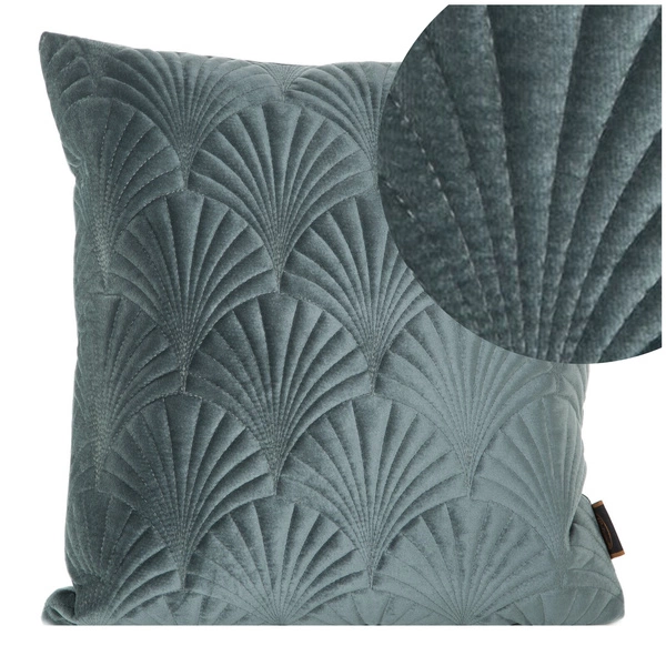 Poszewka ozdobiona jest idealnym odcieniem miętowej  barwy oraz eleganckim pikowaniem niezmiernie przypominającym wachlarz liści miłorzębu. Tak subtelnie dobrane walory wizualne pozwolą wpasować dekorację do większości stylów aranżacji, począwszy od tych tradycyjnych, kończąc na najbardziej prekursorskich wystrojach.