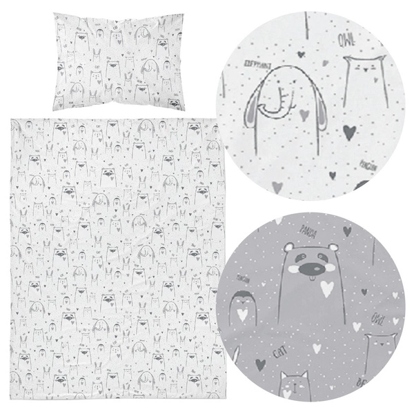 - MAYA MOO biało szara bawełniana dwustronna pościel wykonana z rewelacyjnego 100% naturalnego materiału.