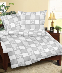Komplet pościeli od Firmy ADAM z kory 100% bawełny. Komplet ze świetnego materiału o żywych kolorach i bogatym wzornictwie. Na szarym tle przedstawione sjest kratka w róznych odcieniach szarości z różnymi wzorami, które ożywiają artykuł. Materiał jest niezwykle przyjemny do spania. Nie wymaga prasowania i jest bardzo trwała.