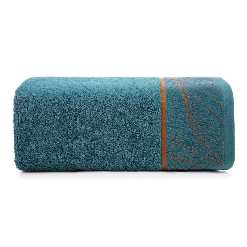 Produkt został stworzony z myślą o klientach, poszukujących wysokiej jakości, stylowych ręczników. Welwetowa bordiura z roślinnym motywem liści lotosu w kolorze złota stworzy komfortowy i przyjemny klimat w Twojej łazience. Bawełniana tkanina jest miękka i delikatna dla skóry, nie podrażnia jej. Ręcznik dobrze chłonie wodę i osusza ciało po kąpieli.