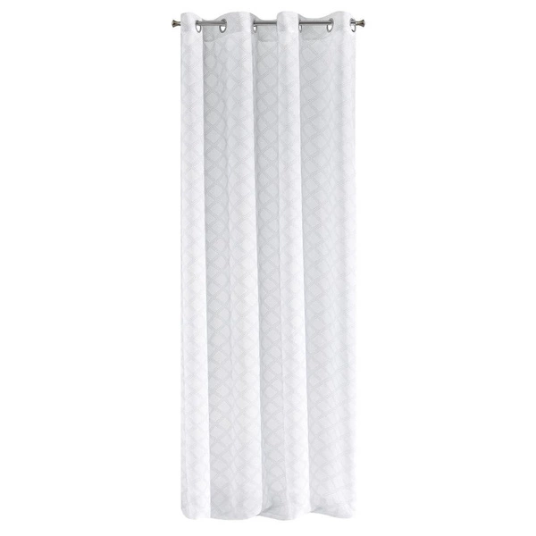 Firana Hazal wkomponuje się w aranżacje wnętrz o stylu skandynawskim i glamour. Wykonana z gładkiej tkaniny, udekorowana geometrycznym, brokatowym wzorem wizualnie podkreśli styl pomieszczenia. Dzięki wszytym przelotkom aplikacja firany na karniszu jest bardzo szybka, a gęsty splot materiału sprawia, że produkt może też spełniać funkcje delikatnej zasłony.